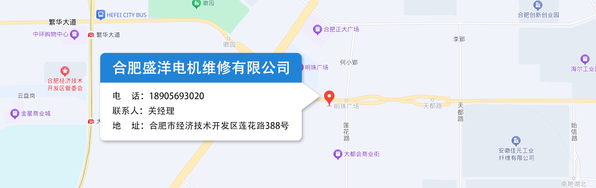 合肥盛洋电机维修有限公司是安徽省具有规模的龙头机电设备维修公司,公司下设合肥、淮北、阜阳、芜湖、安庆五大维修基地、业务遍布安徽全省,专业从事大型电机、水泵、风机...